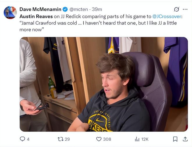 里夫斯21+3小腿被撞:雷迪克称情况还行 湖媒晒两战41分状态神勇