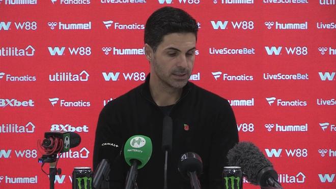 率队在英超第11轮客场2-2战平桑德兰之后,阿森纳主教练阿尔特塔出席了新闻发布会。