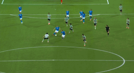 首先是霍伊伦,他与德布劳内两度完成“曼彻斯特连线”。本场比赛第一个进球:德布劳内后场启动,甩开多名防守球员带球前插,随后送出一记提前量恰到好处的直塞,而霍伊伦后来居上,凭借身体优势拉开防守球员一个身位,带球加速单刀杀入禁区右侧后冷静低射,穿裆了对方门将,将球稳稳打进,整个进攻只能用丝滑来形容。